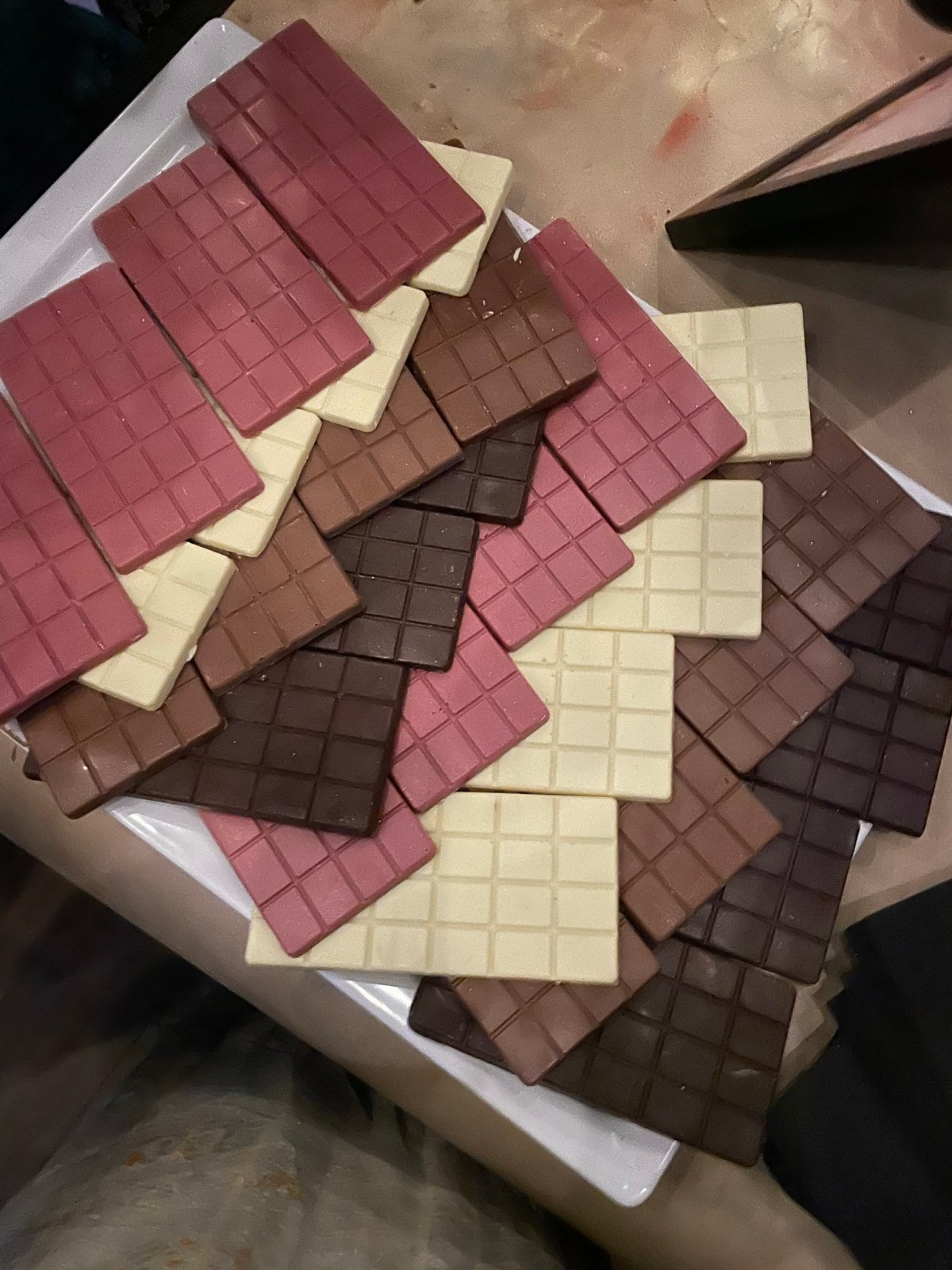 They also gave event goers a chance to take home an edible piece of their own art, by way of a chocolate decorating station. Hosted by Lazy Gourmet, it featured their collection of edible cocoa butter sprays and paints. Out of the milk, dark, and ruby chocolate bars available, I chose white chocolate as my canvas in order to best highlight my floral illustration with simmering gold paint.