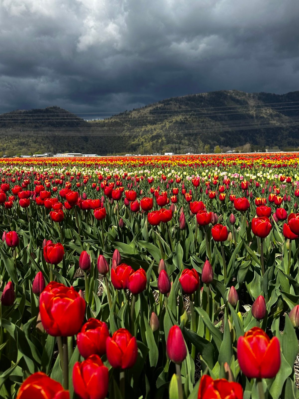 Located in Abbotsford, BC Lakeland currently has over 28 acres and 100 tulip varieties to take it. All set to the backdrop of our coastal mountains, minding the power lines. And if you come at the right time of day you can capture the colourful field with the rising or setting sun in the background.