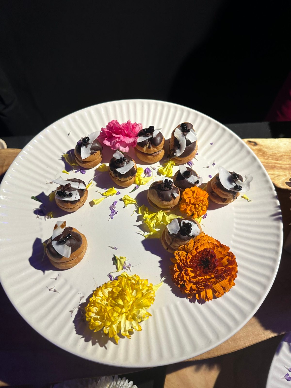Coconut Portiferole with Red Beet Hummus & Roasted Cauliflower Dukkah Spice and a Chocolate Mousse stuffed Coconut Porfiterol. I appreciated the duality of a completely vegan sweet and savoury canapé made using the same base, however the execution was lacking. The Porfiterol was pre-made and frozen, altering its texture. What was left was a heavy and starchy, sandy morsel that overpowered every thing else, no other flavour could get past it.