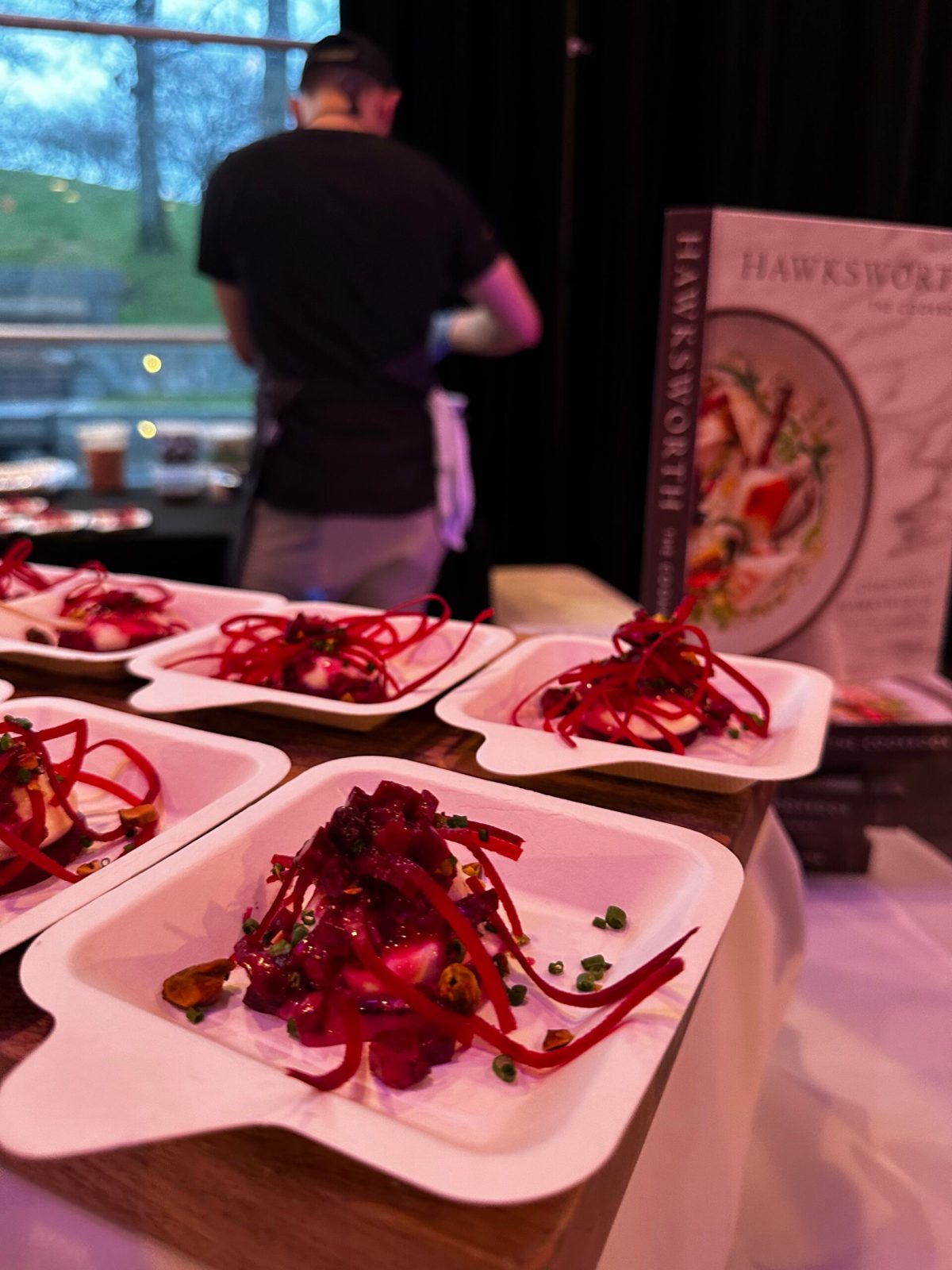 At the Maxine’s Cafe & Bar table they had a bite of pickled Pacific herring with smoked bull kelp and butter on Mary Ann’s brown bread. Located right at the entrance, this was the first food station and the dish that served as the perfect aperitif for the evening. A tangy and savoury bite, with the telltale fishy flavour of herring, ideal for opening up your appetite for the 15 to follow.