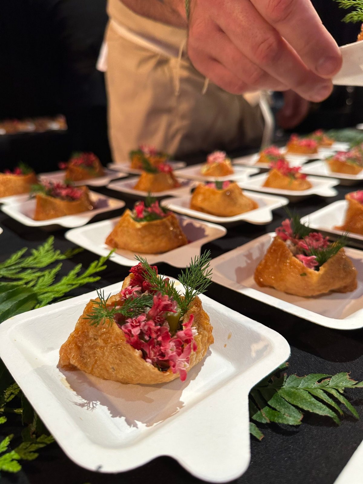 Guests were invited to circle the open space of Granville Island’s Performance Works, (where the gala was being held), exploring 16 food stations with 8 drink tables and 17 drink samples to try. As a VIP ticket holder, we were given an hour earlier access to be able to have more time to explore all the food and drink options, and more time to take it all in and go back for seconds. The best part of the whole experience is being able to watch each dish get assembled or plated and to engage in the chefs who have created them.