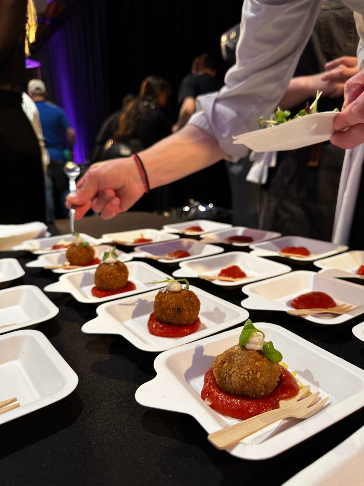 I would travel the room clockwise, starting from the door, tackling savoury bites first then hitting drinks and desserts on my second round. What I tried and a few points on how they taste are below, keeping in mind that the majority of the celebrity chefs were cooking in real time with a makeshift kitchen, so the quality can be inconsistent.
