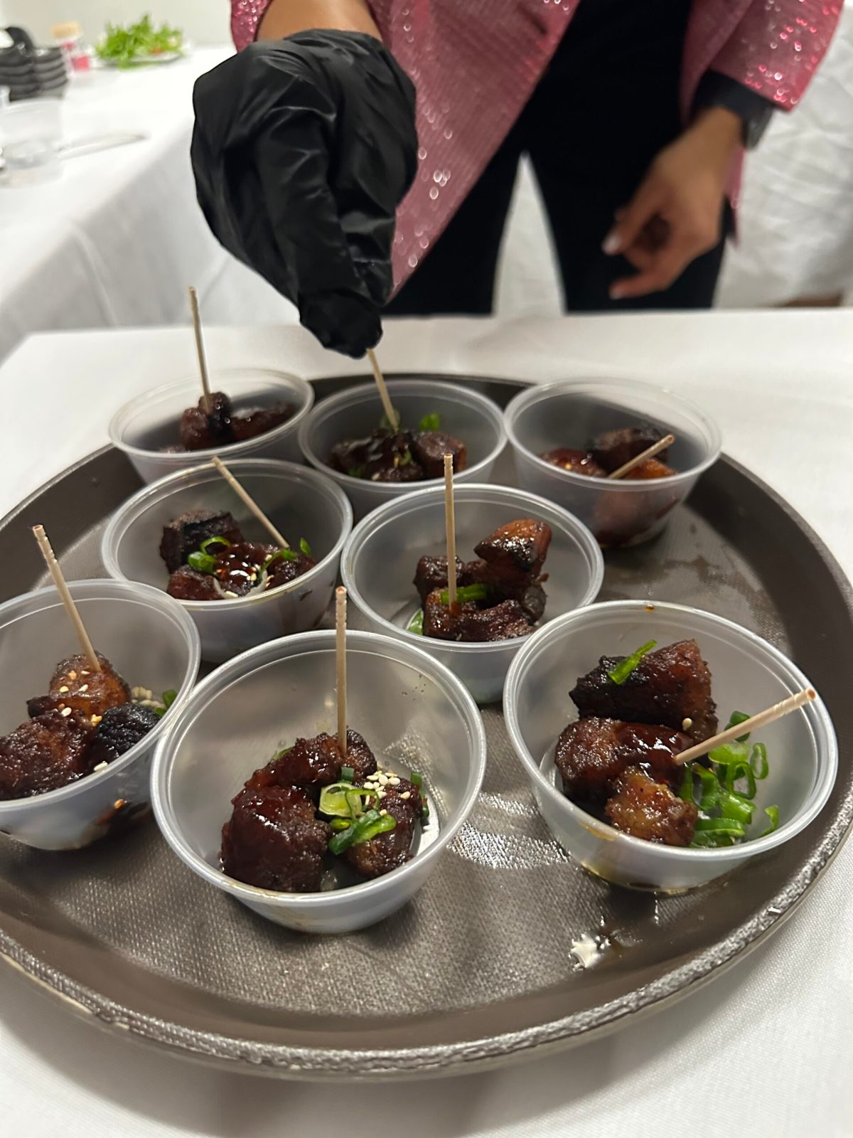 There were also cubes of caramelized pork bites in a cup going around. Prepared by a local caterer.