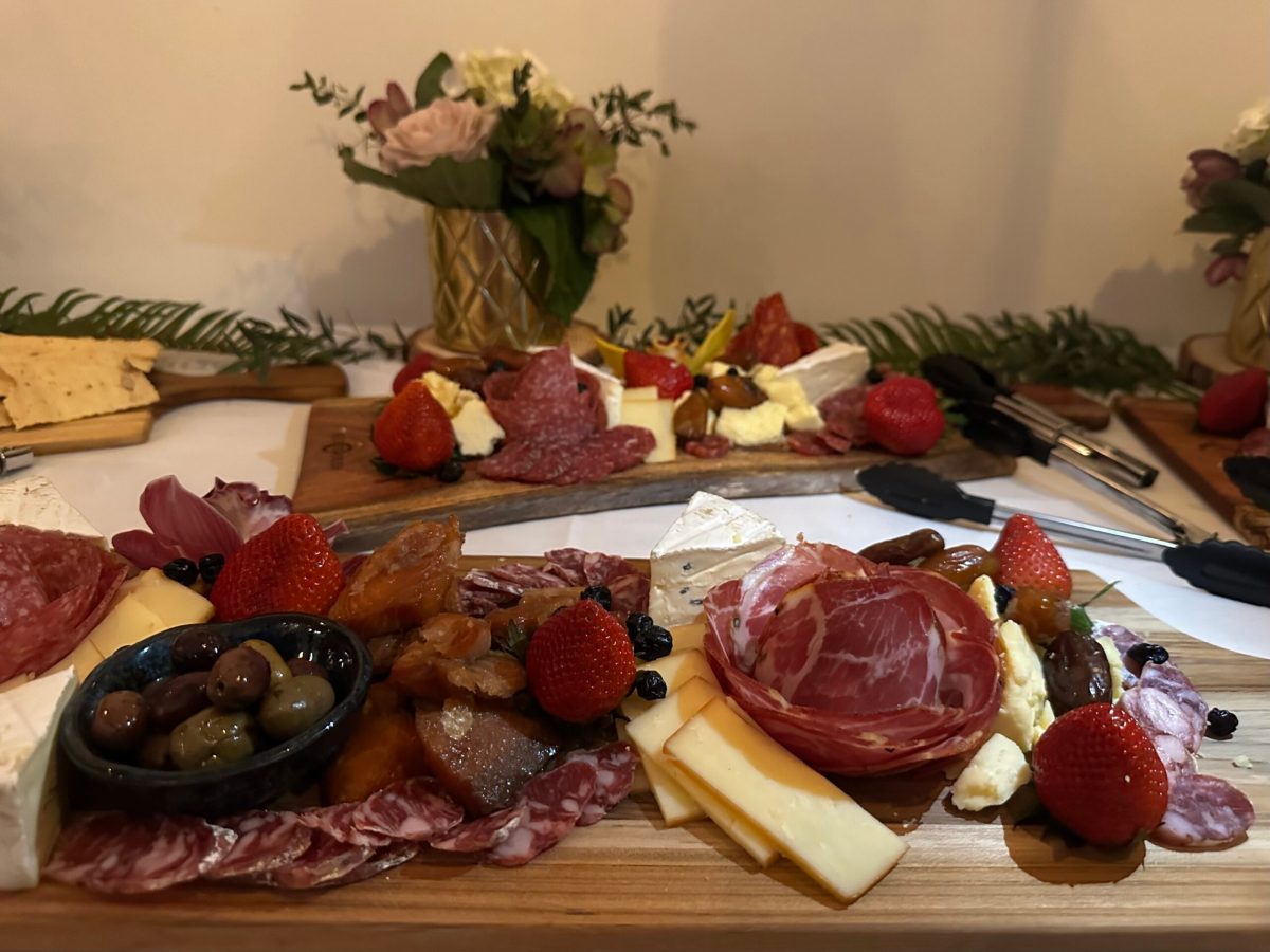 As we drank and chatted we were invited to graze on a cheese and charcuterie board with fruit.