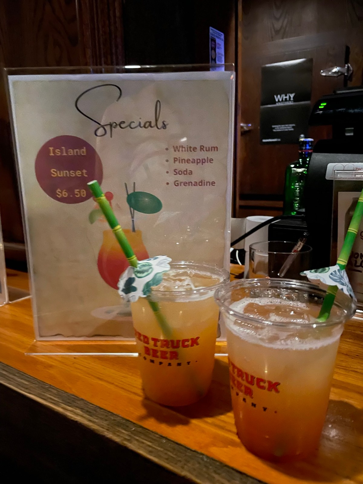 Our third beverage was a tropical cocktail available with straws and toppers that matched the theme better.